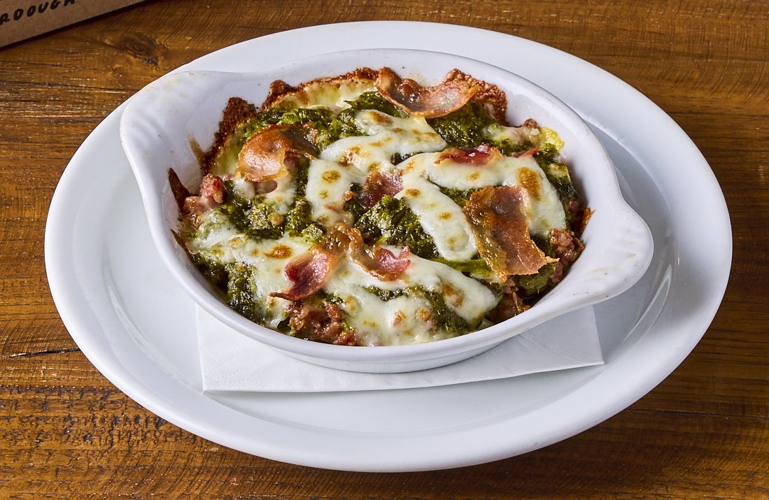 Tuscan sausage friarelli cream, mozzarella, Franco's Grana, crispy pancetta