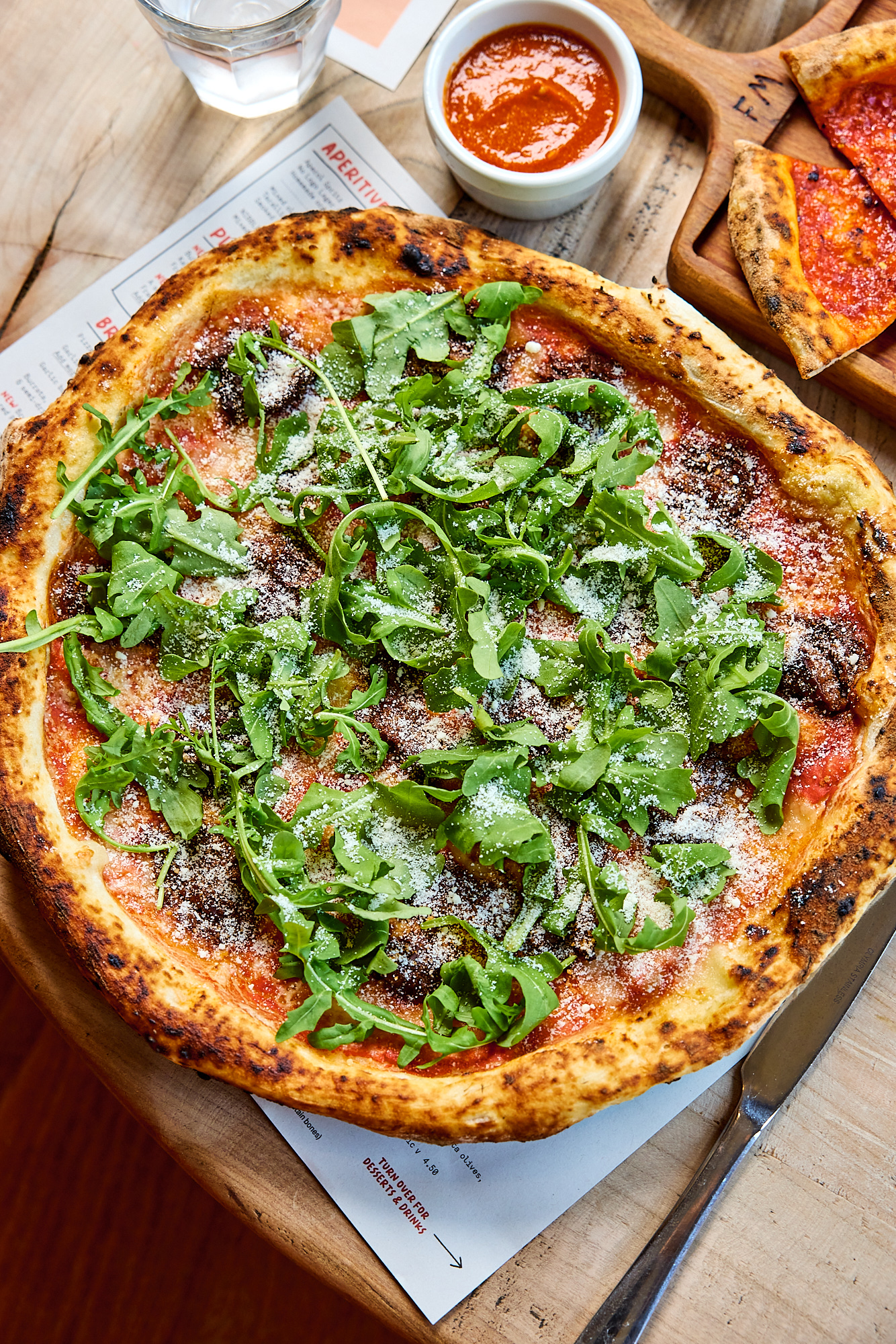 Neapolitan beef shin ragú, organic tomato, mozzarella, Franco's Grana, pecorino Romano D.O.P, rocket